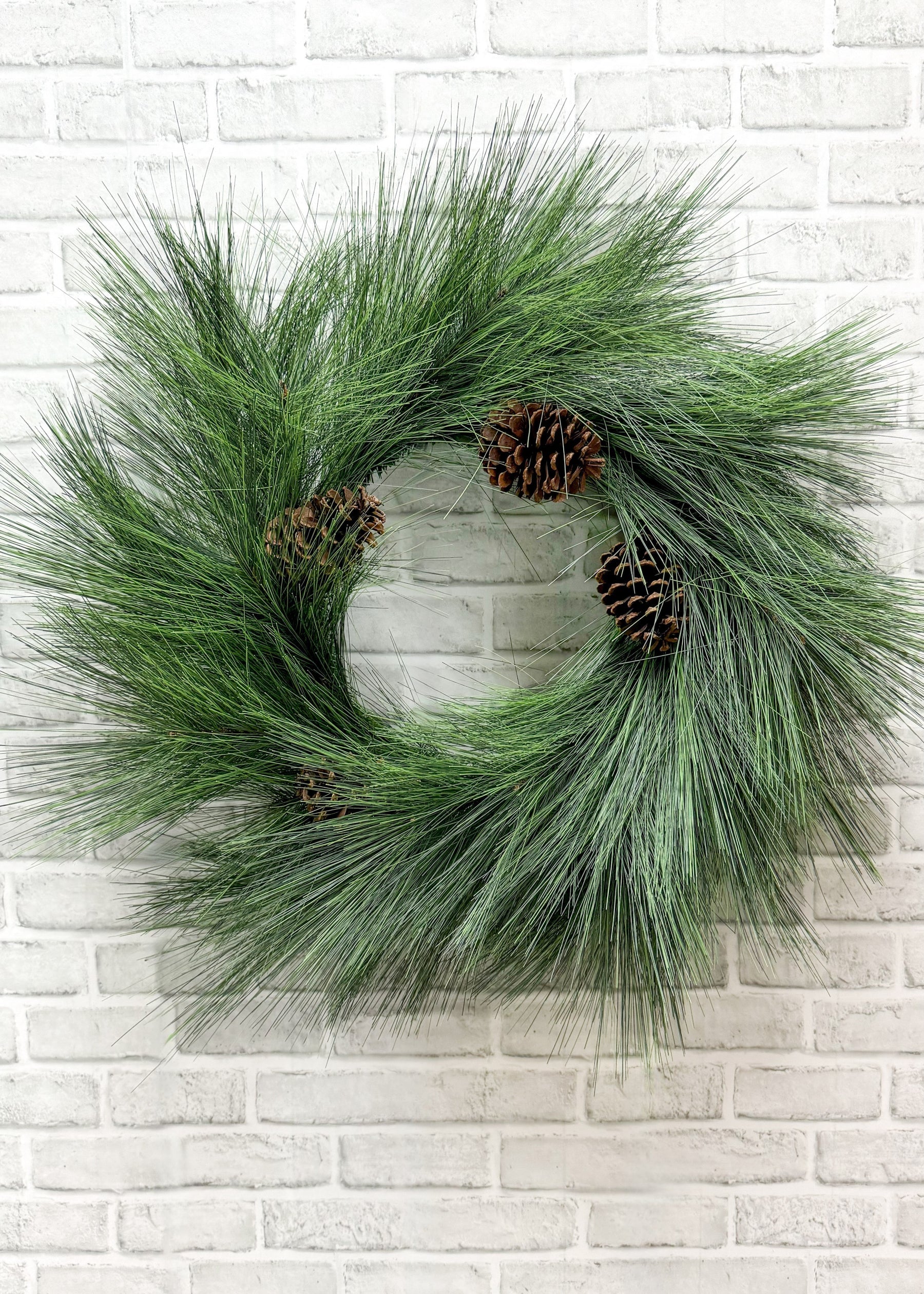 11" IN DIM, 26" OUT DIM, LONG NEEDLE PINE WREATH