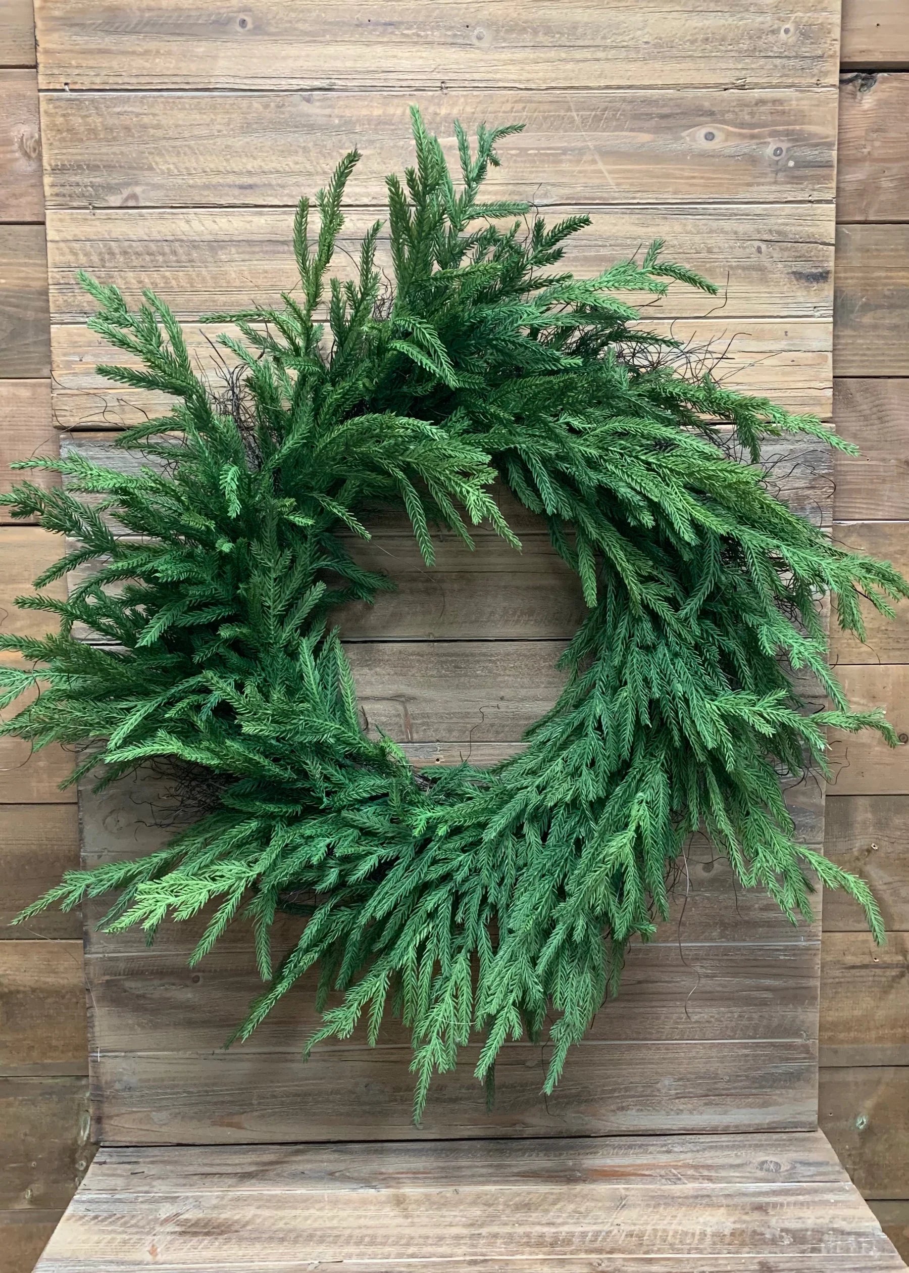 12" INSIDE DIM, 24" OUTSIDE DIM, FRESH TOUCH NORFOLK PINE WREATH ON NATURAL FRAME