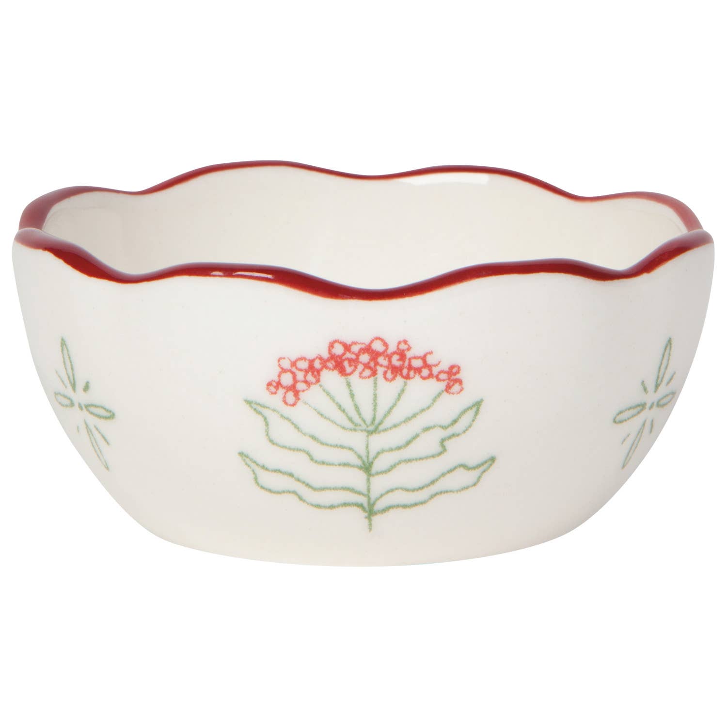 Delicate flowers in a quaint palette of sage green, wine red and bright white exude rustic farmhouse charm with this Camellia Stoneware nesting bowls set. Dimensions: DIA3 / DIA2.25 / DIA2 / DIA1.75in