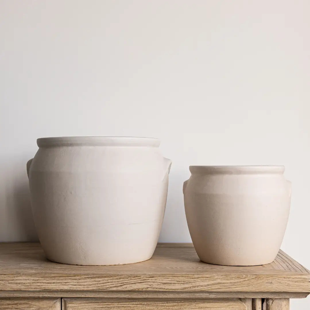 The Luxe B Co. French Replica White Matte Confit Crock Pot is a vintage inspired vase, made from terracotta. It is ideal for bringing a touch of originality to your home decor, whether placed on shelves, coffee tables, dining tables, or in bedrooms. The soft, black colour of these vases allows for versatile styling options. They can be paired with dried flowers for a decorative touch, or displayed on their own for a simple yet elegant look. Made in Vietnam