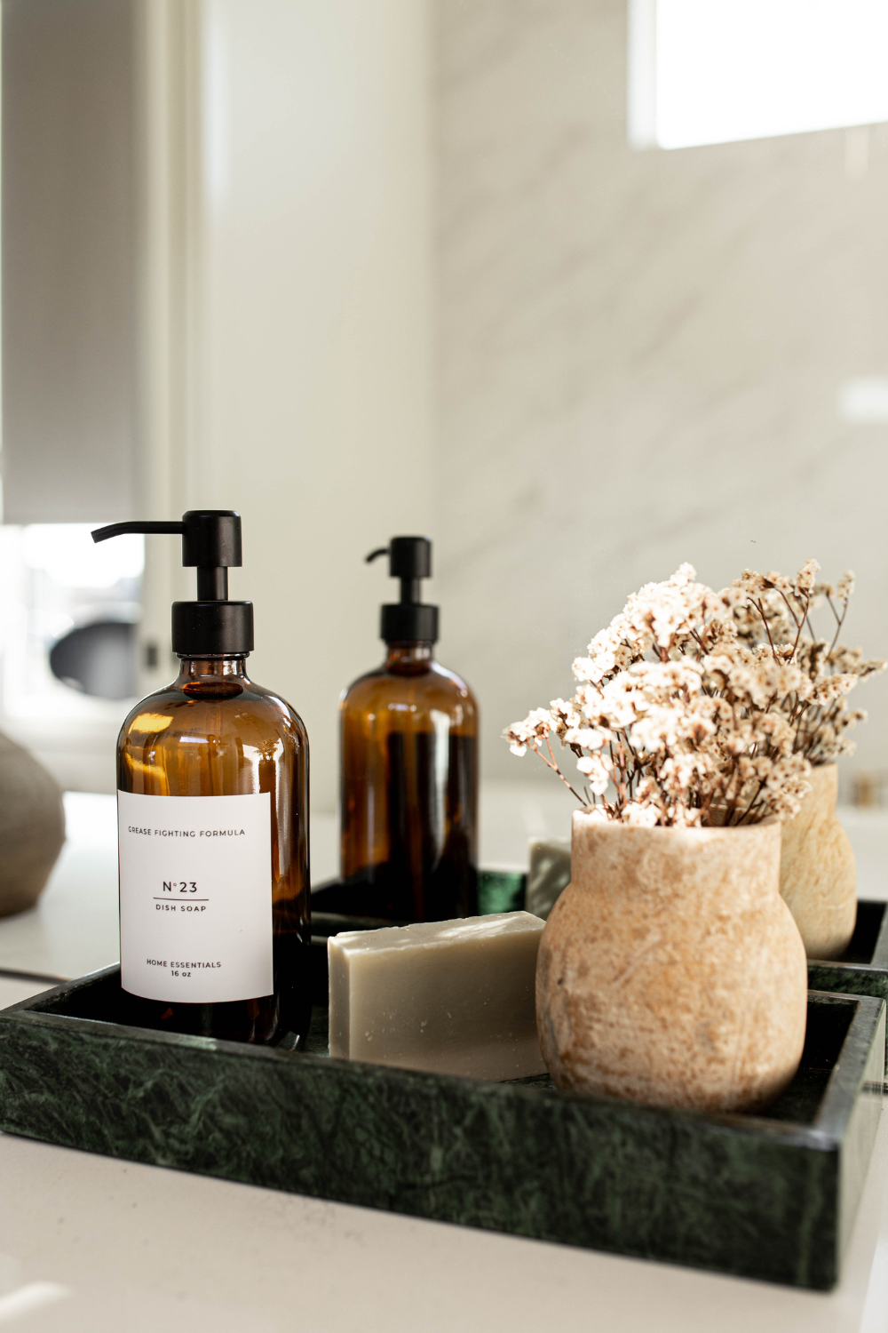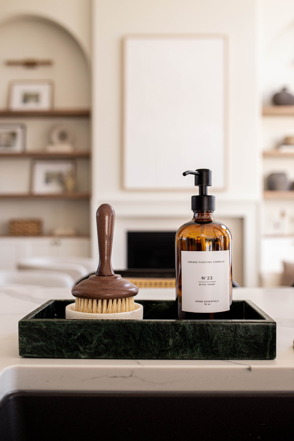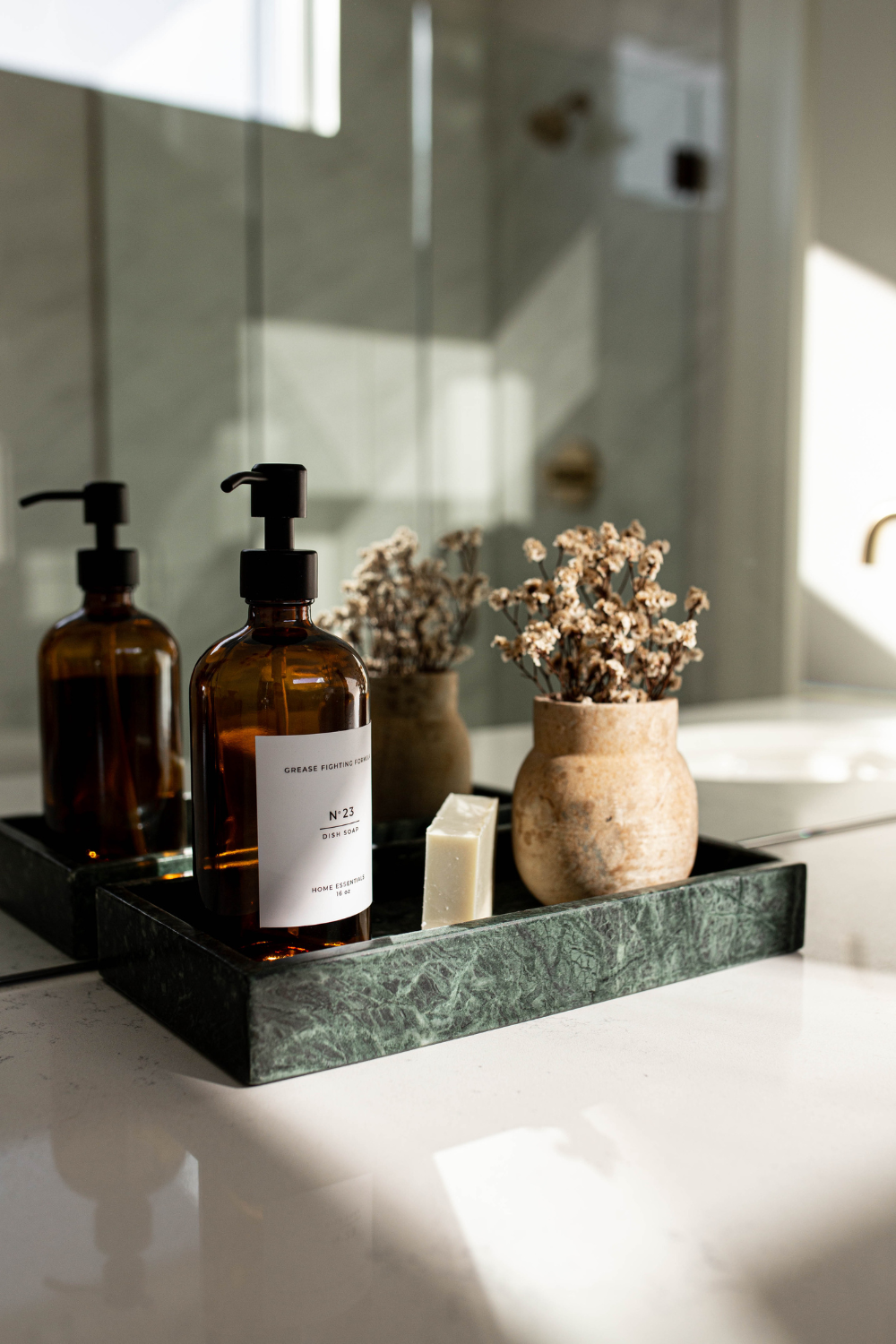 The marble tray adds an extra design element that complements any kitchen, bathroom or vanity. It’s perfect for displaying small items like candles, perfumes, or jewelry, offering both function and style in one beautifully crafted piece. Use this marble green tray as a stationary holder for your everyday hand & dish dispensers to keep it within easy reach.