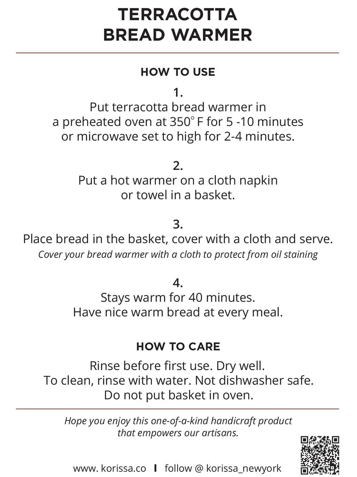 - Material: (Bread Warmer) 100% Terra Cotta * (Basket) 100% Seagrass and Jute wool