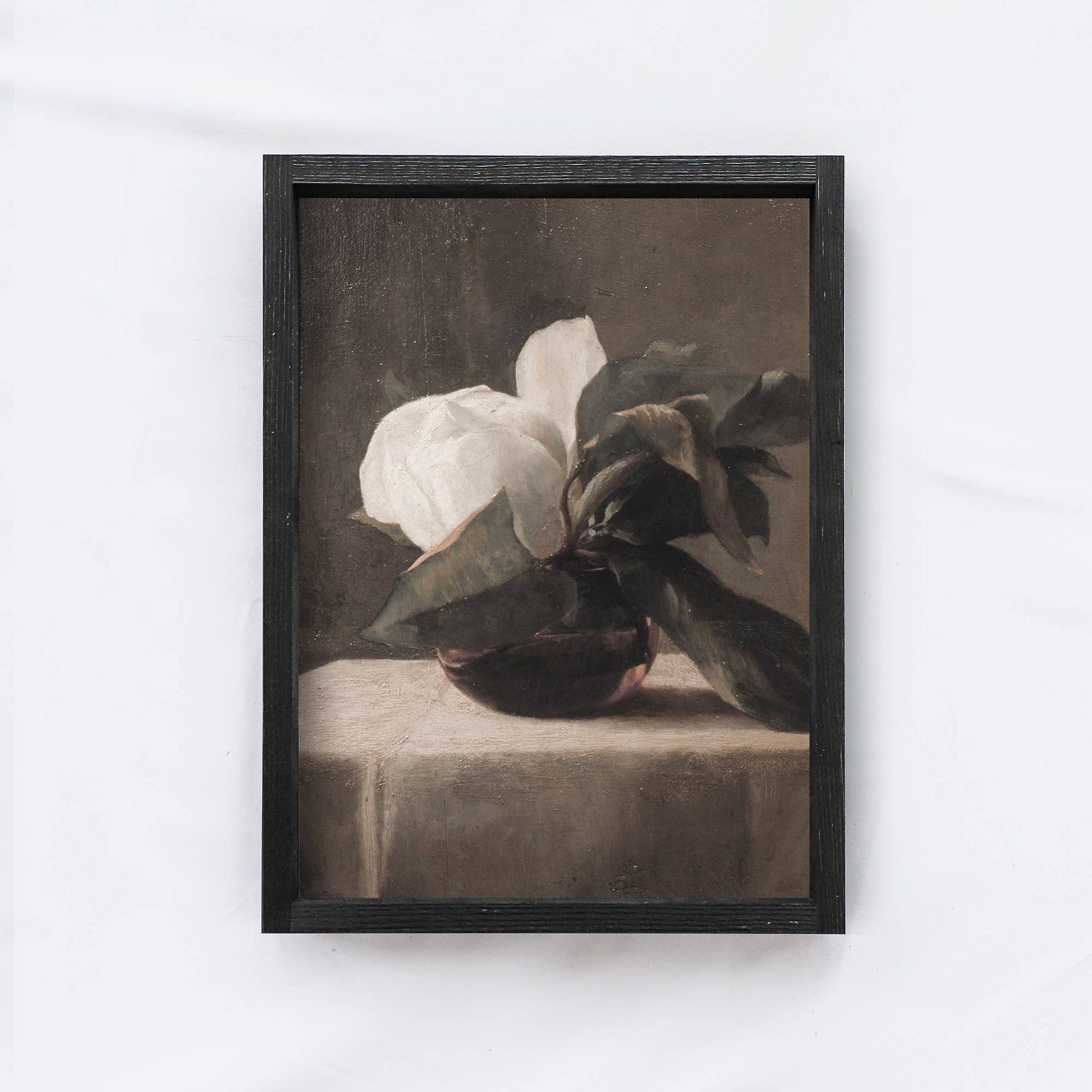 Magnolia Painting Framed | Vintage Flower Wall Art A161