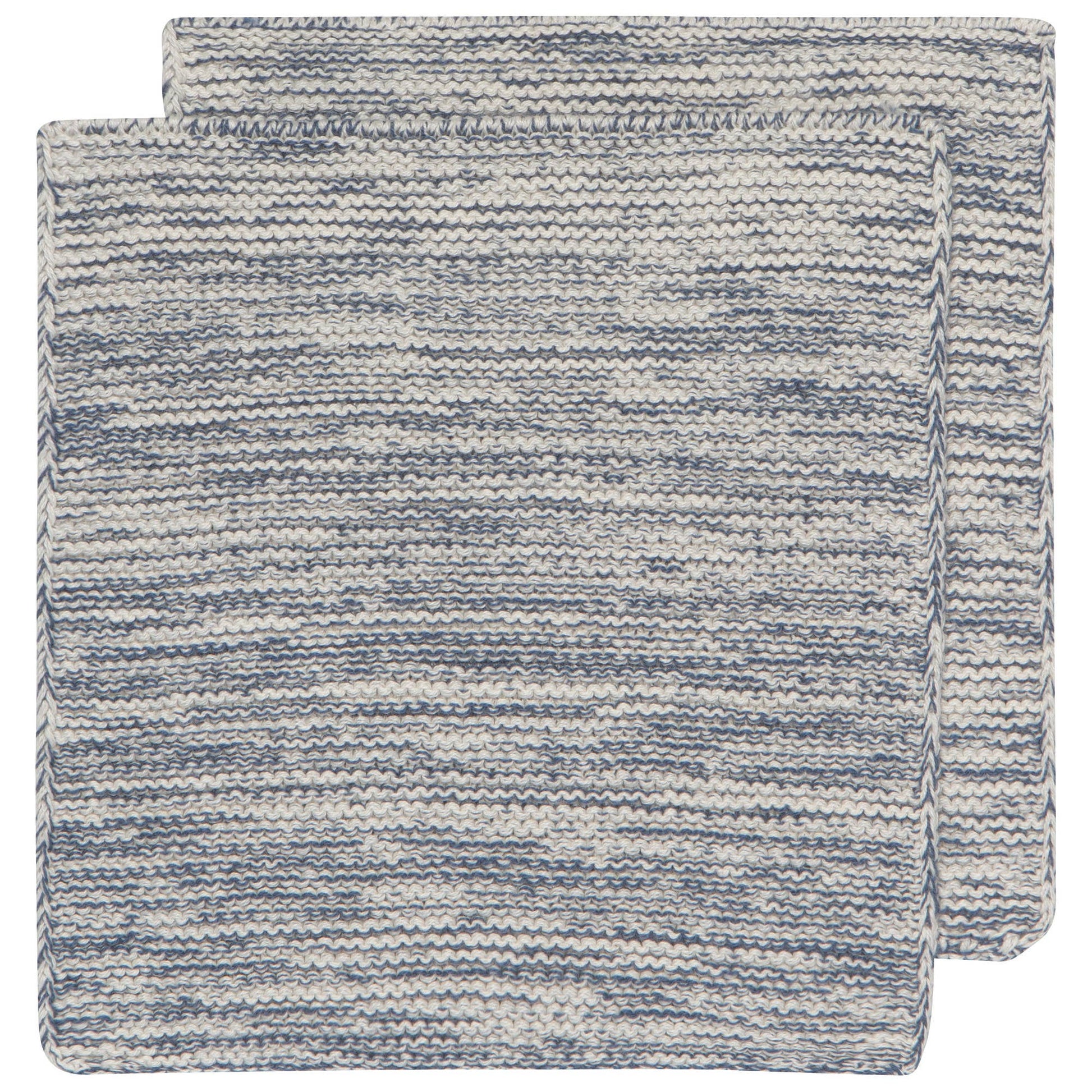 Sets of two dishcloths are soft on the hands yet tough on dirty dishes. Knit by hand with heathered cotton yarns. Part of the Medley collection of color-coordinated kitchen and table linens from Danica Heirloom.