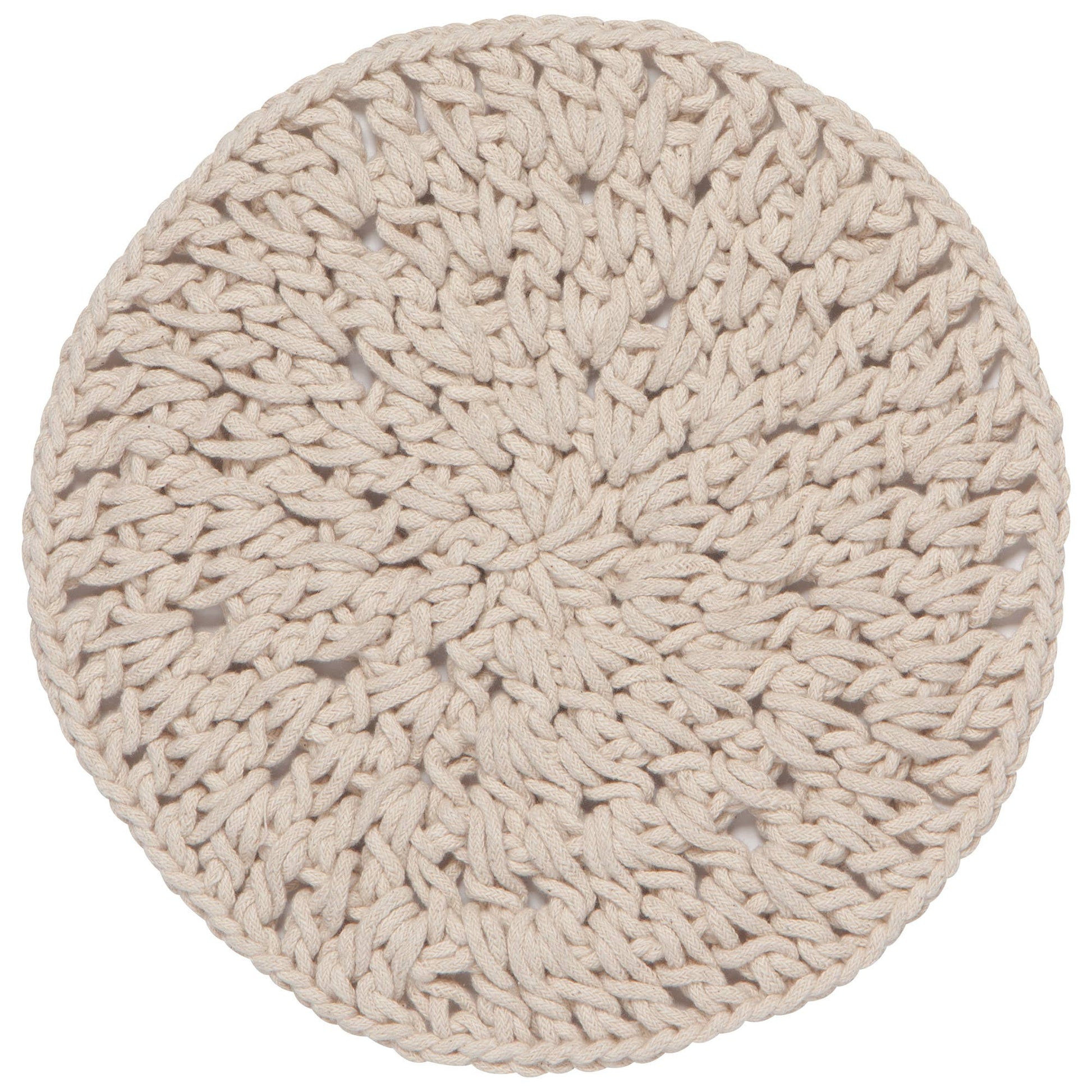 Set a hot pot or pan down on a handmade knotted trivet. Thick cotton rope provides protection and durability, while offering textural intrigue.
