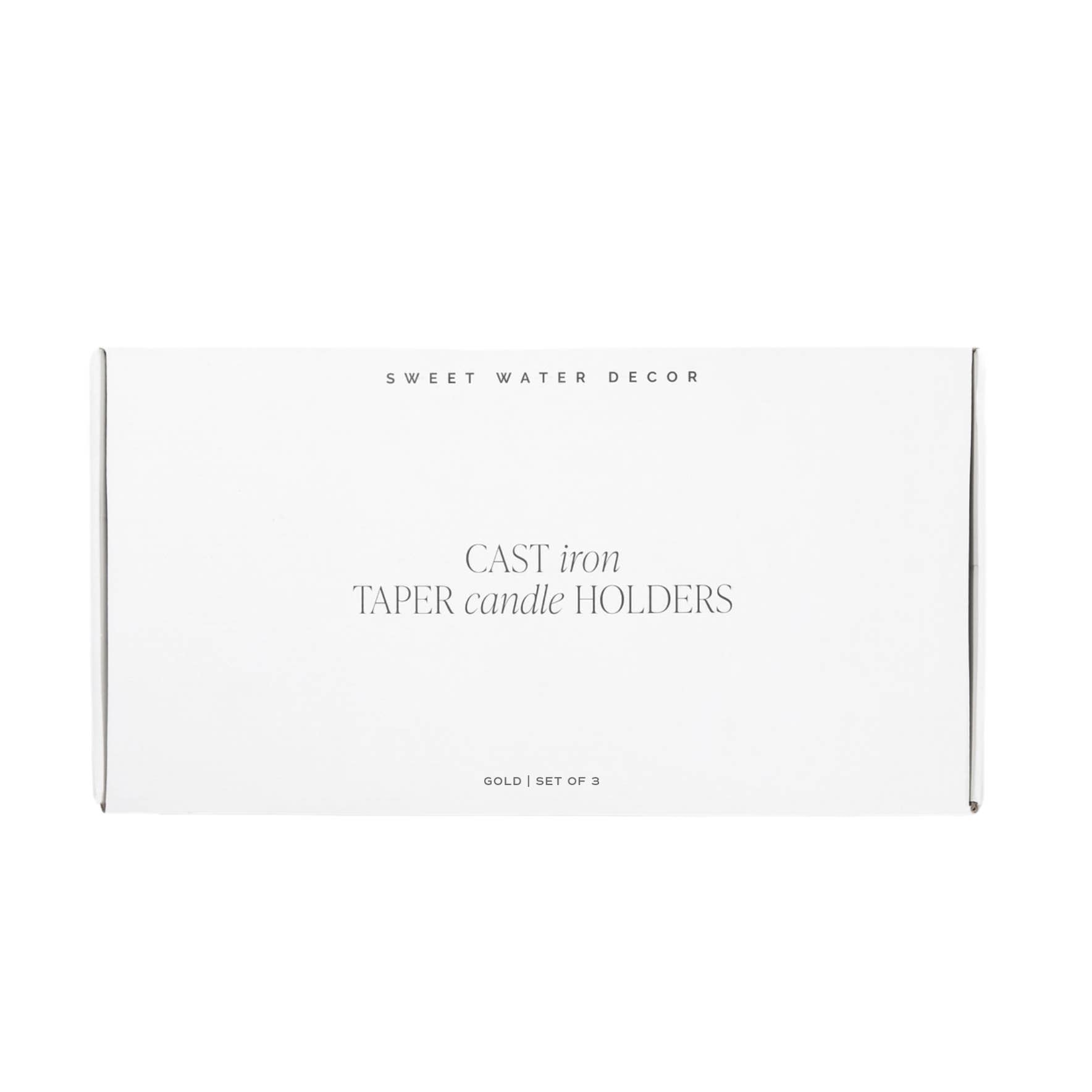 Gold Cast Iron Taper Candle Holders, Set of 3