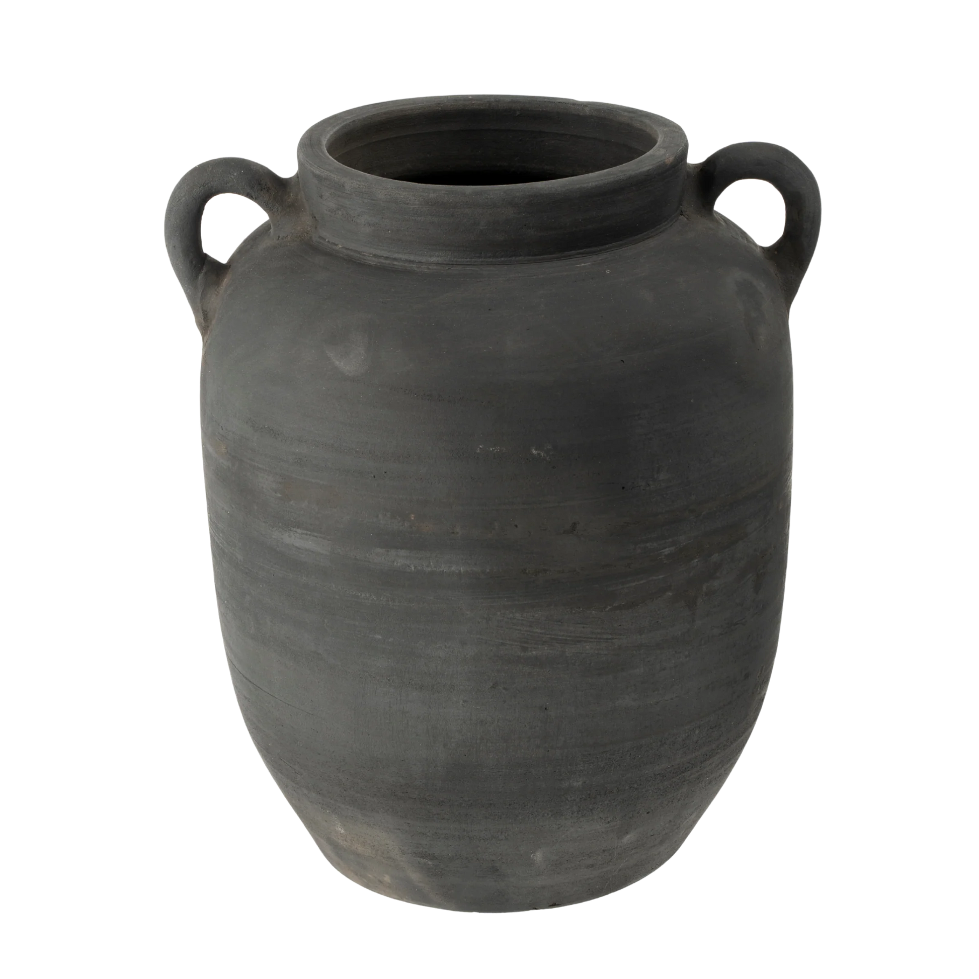 Materials & Composition: 100% Terracotta. Meticulously hand-thrown by artisans in India, this vase is shaped using traditional pottery wheels and fired in wood-fuelled kilns. The second firing, combined with sand and smoke, transforms natural terracotta into its distinctive matte-black finish, offering a contemporary twist on a classic material.