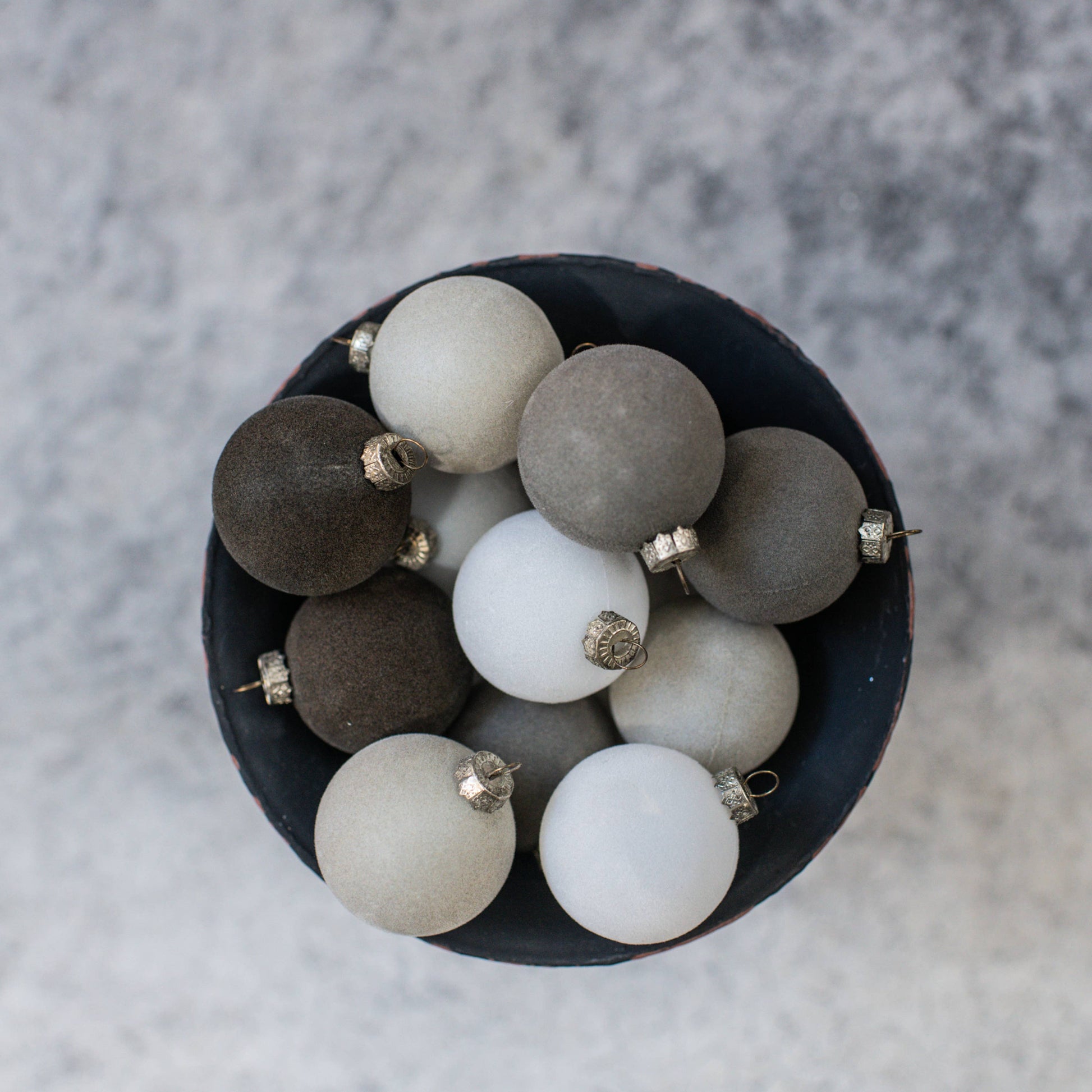 SET/ 12 - 1.75" GREY FLOCKED BALLS