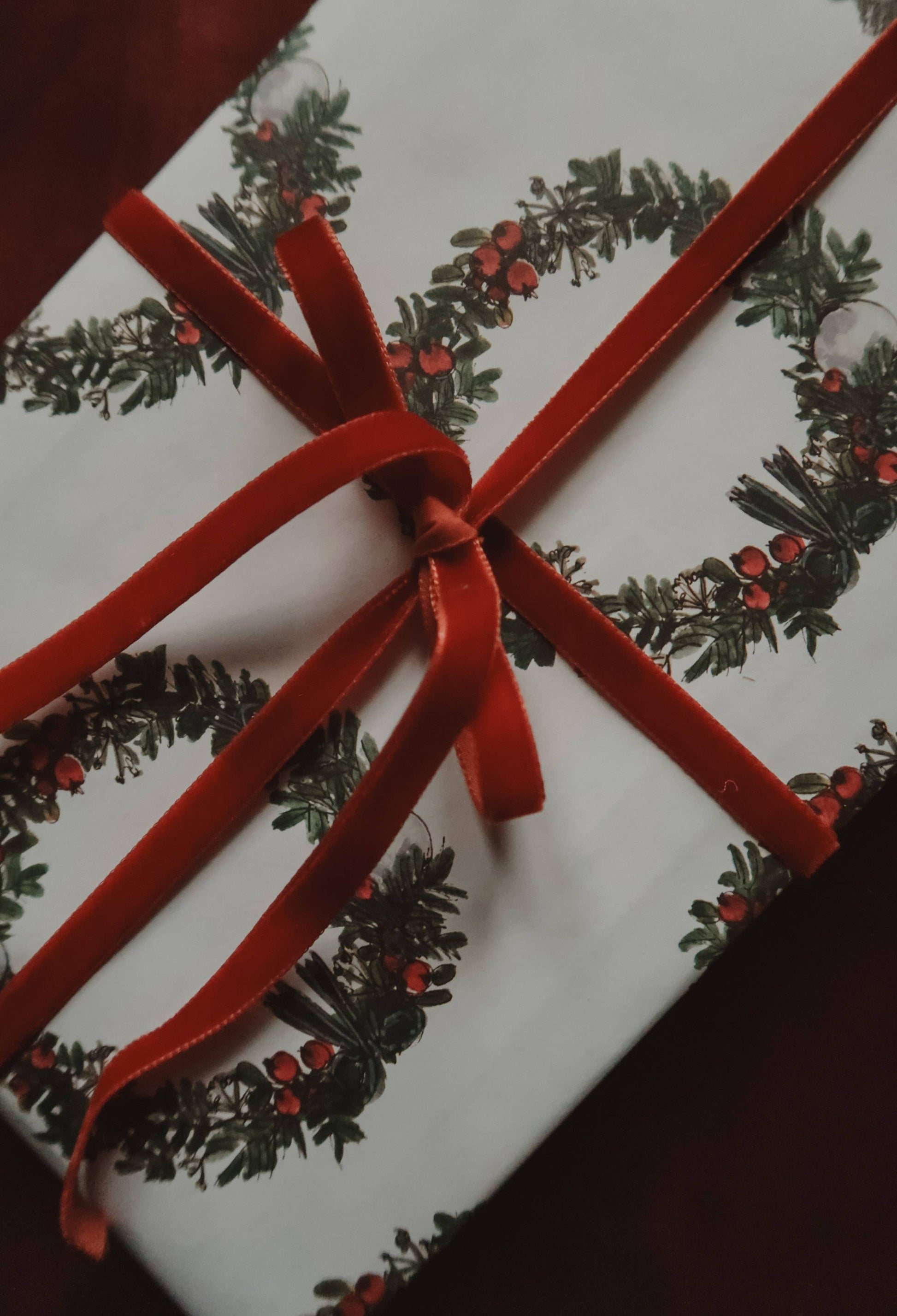 This Christmas wreath wrapping paper is printed on a white offset 70 gsm paper.