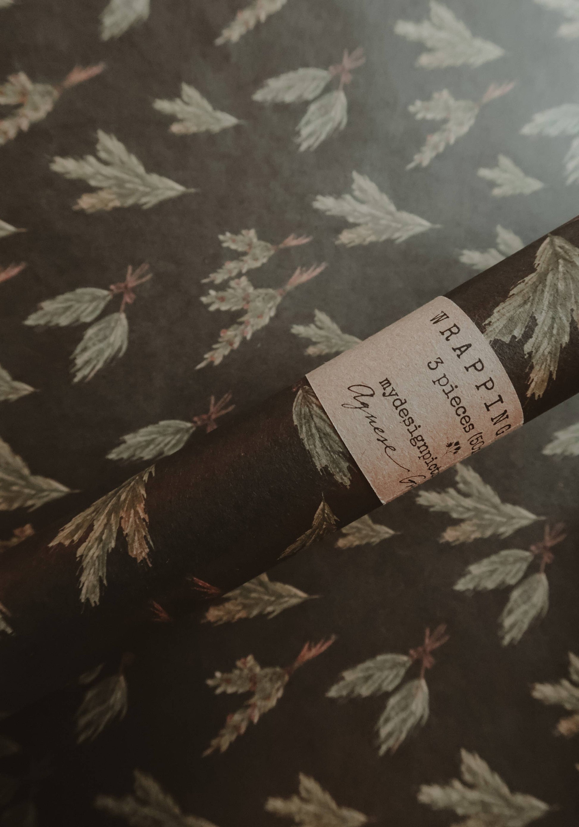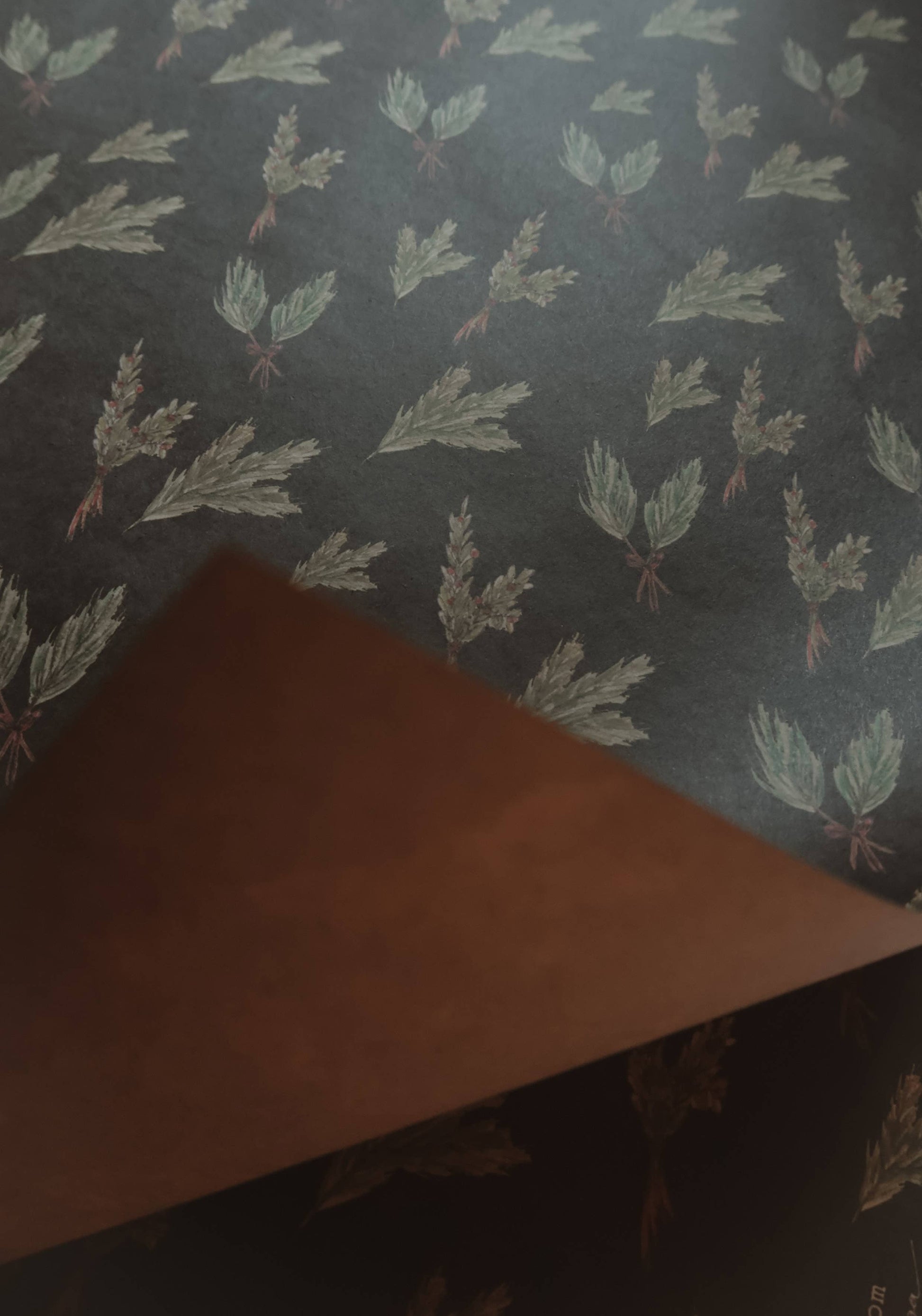 Set Of 3 Pieces Green branches Kraft Wrapping Paper