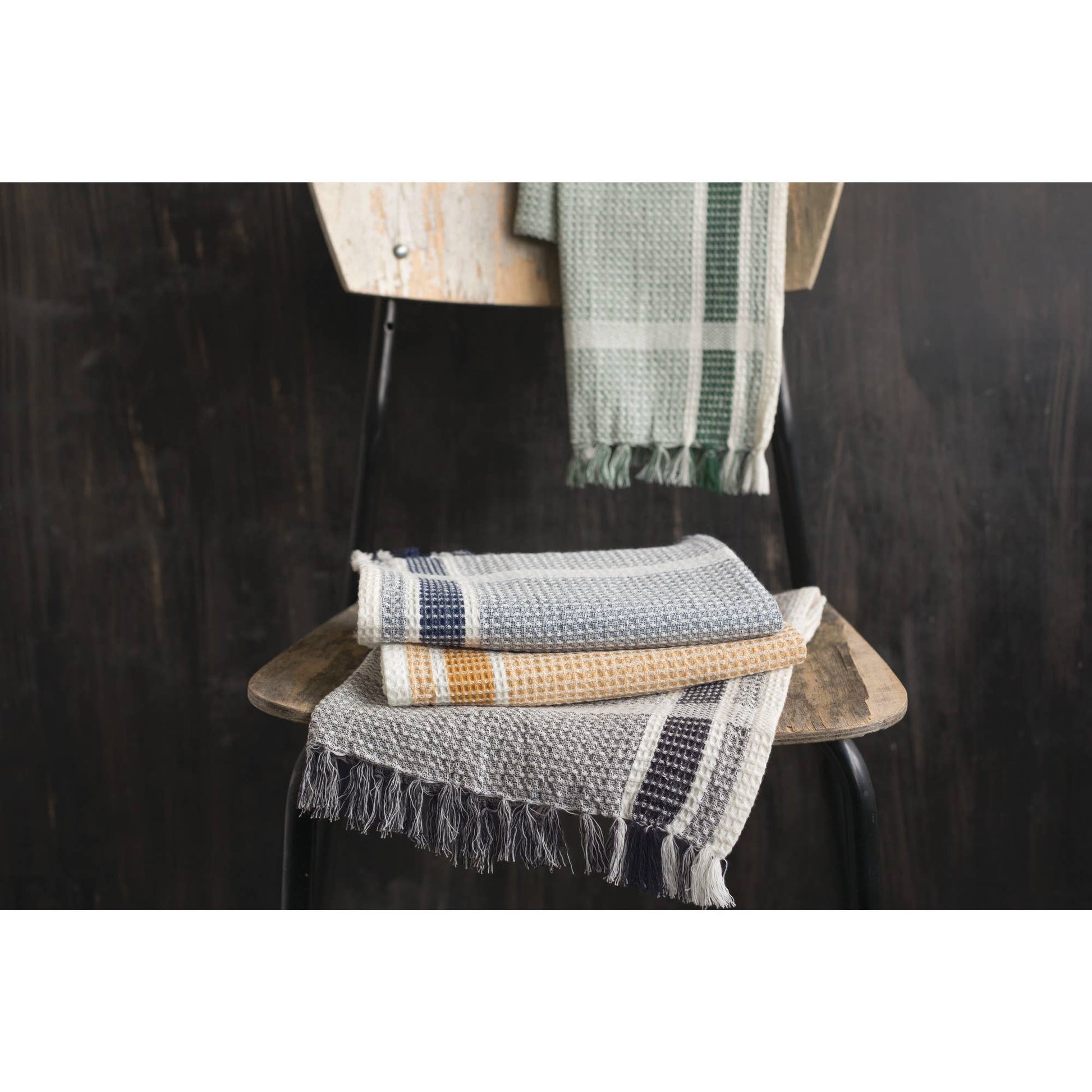 Prewashed, extra soft chambray threads are woven together to create a waffle texture, perfect for drying hands and dishes in the kitchen. Part of the Medley collection of color-coordinated kitchen and table linens from Danica Heirloom.