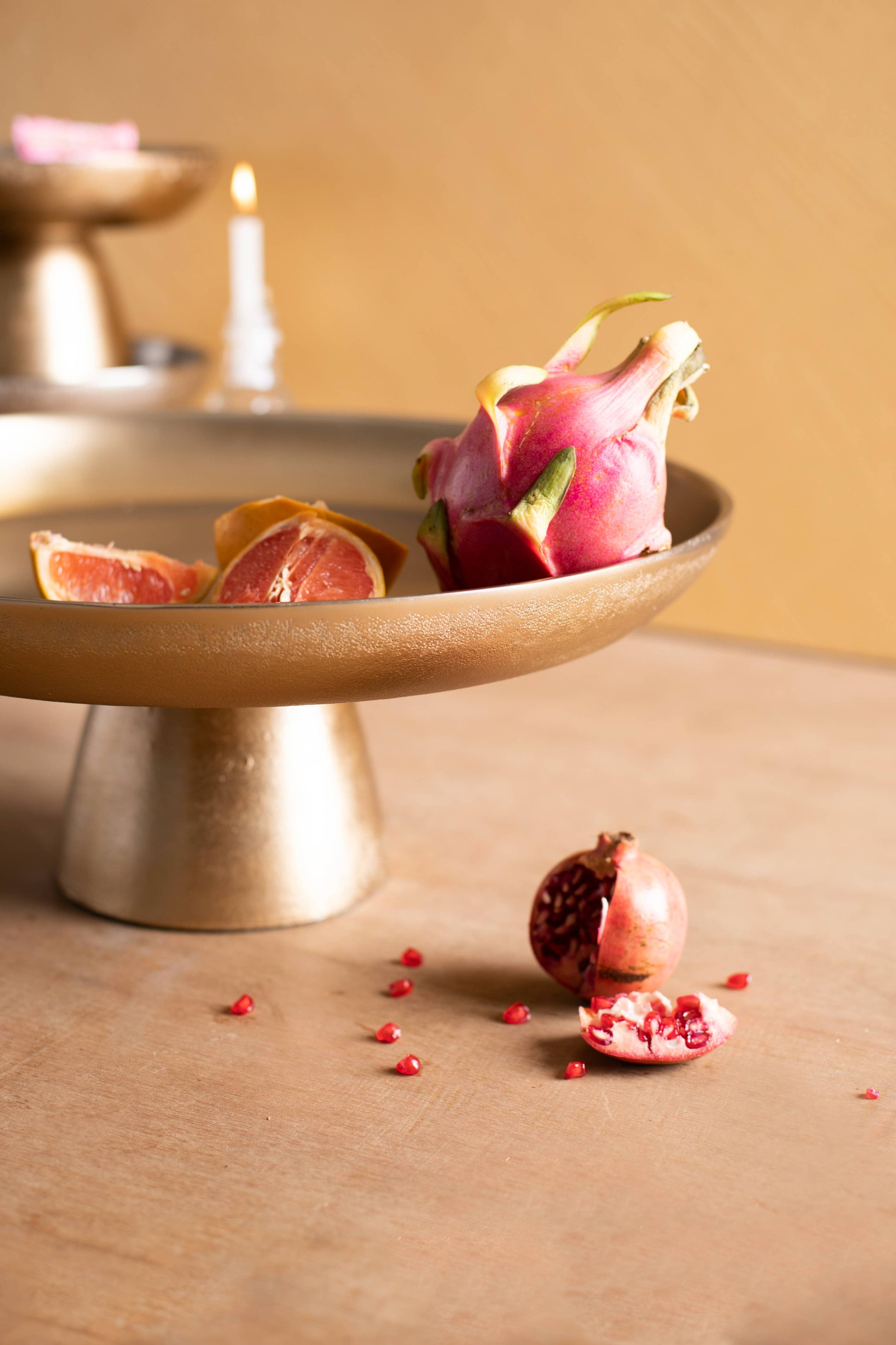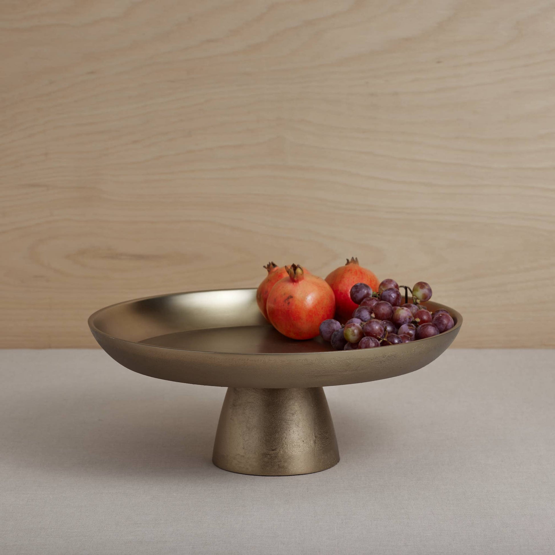 When your guest list grows, count on our Stinson Large Pedestal to serve the gang in style. With a smooth surface on the upper tier, food takes the center stage. Each piece is hand-cast of lead-free aluminum and finished with a food-safe antiqued brass coating. The short, rounded base remains slightly textured as the result of the casting process, creating a captivating contrast to the polished top level.