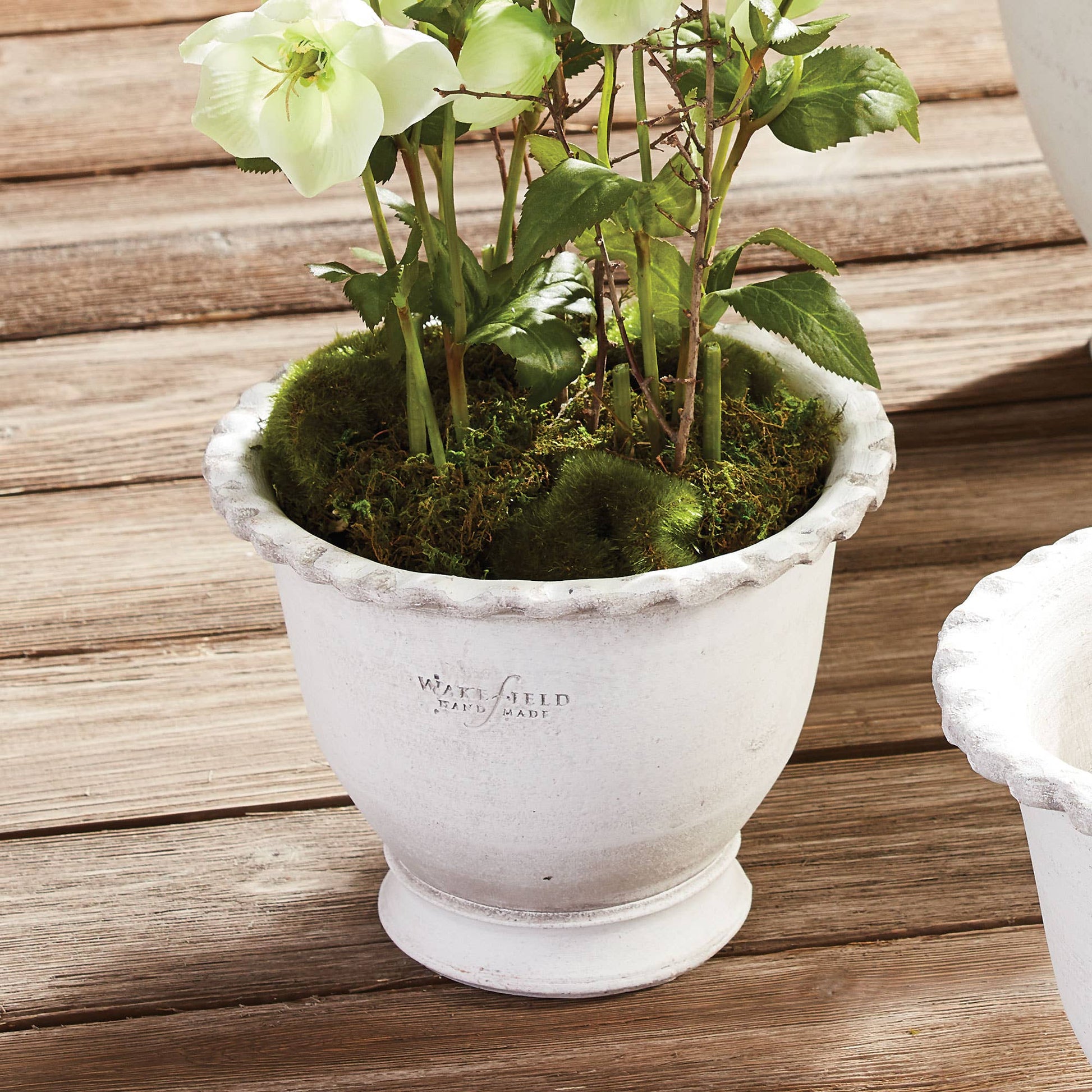 Designed by our own master potter Peter Wakefield, one of an exclusive set and handmade in Honduras. A wide bowl-shaped design for a shallow root system. This is Alvena. 8.25 x 8.25 x 6.5. Use as cachepot or plant directly into. Protect fine furniture by lining interior of pot. Protect from frost and hard freeze.