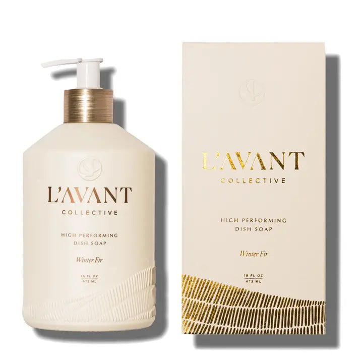 She's back! And this time in a gorgeous matte cream glass bottle. Tis the season for plenty of dirty dishes! Bring an extra note of joy to the chore with our warm and lovely natural Winter Fir scent. With subtle notes of cedar, fir, balsam, and sandalwood, our sophisticated seasonal fragrance lends a little winter warmth to your daily dishwashing, and our signature eco-friendly L’AVANT formula leaves your skin feeling soft and pampered. Your guests will be insisting on lending a helping hand in the kitchen.